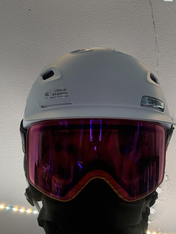 In fitted hats I’m between 7 7/8 and 8, can go either way depending on manufacturer. My favorite adjustable hats are Alter Ego size XL, which they say are for heads 57-63 cm. I don’t max those out, which goes along with what I get when I measured my head at just over 61 cm. I read reviews that say this Smith helmet runs small, so I ordered the XL, which they claim is for head sizes 63-67 cm. This helmet is too tight on me, and that’s without a balaclava on. I suspect the stated sizes are for the with the padding/insulation removed. I was looking forward to perfect integration with my Smith goggles, but this one is getting sent back.
