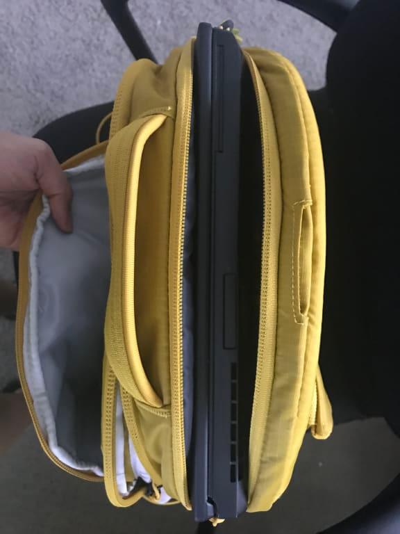 - Padded laptop sleeve protects electronics on the go